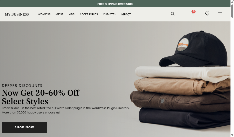 If you want to establish a fully functional and professional-looking E-commerce fashion business, this layout is suitable for you. It is customizable for various specific online stores, such as ready-made garment stores, women's fashion stores, fashion designers, men's fashion and accessories, wholesale clothing sellers, clothing and accessories, etc.